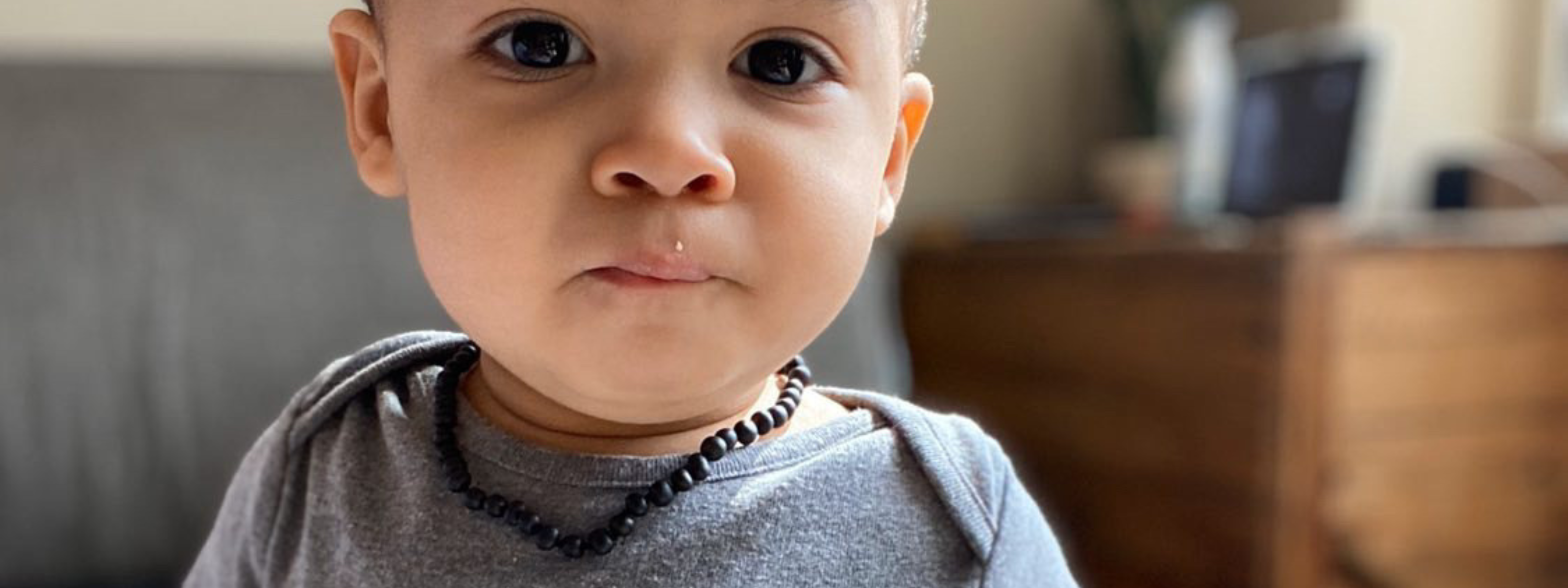 Ecopiggy amber teething necklaces come in two sizes 11” and 12.5”, and can be worn around the neck, or doubled around the wrist or ankle. To determine which is the best size Baltic amber necklace for your child, READ MORE.
