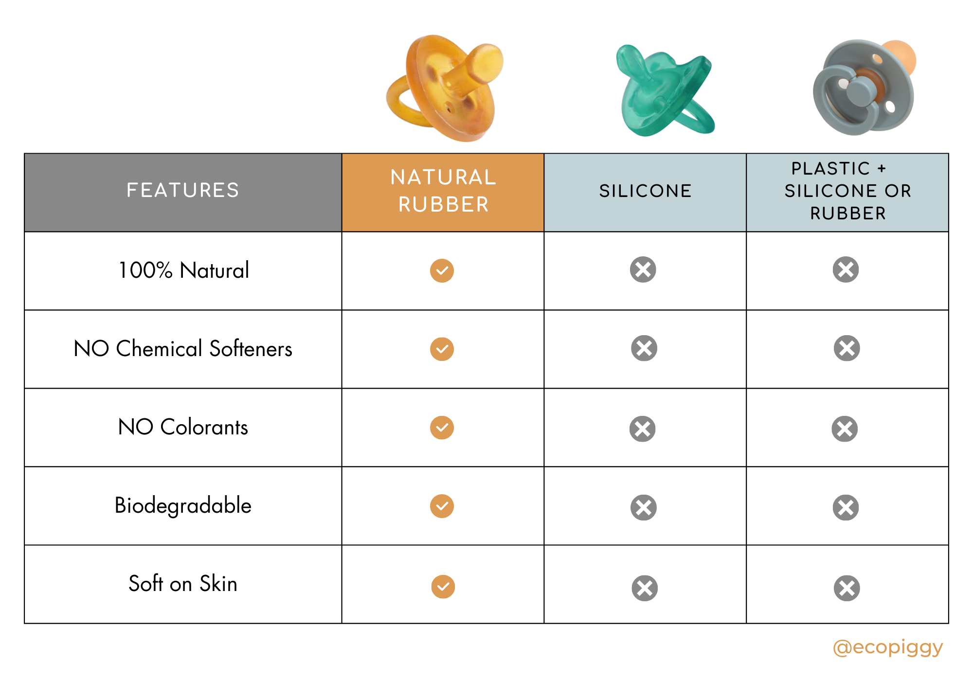 Compare natural rubber pacifiers to other options on the market. Understand why Ecopacifier is the safest, most natural choice.